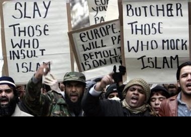 Bright Eyes (currently unavailable) Not bad. Thick letter, thick booklet, autograph card and a picture of the head of this ship called BABYLON MYSTERY ORCHESTRA which is located in the land of the free. Politically incorrect and relevant in terms of the total world situation. First I thought it was a fake, because the guy looks like Sam Neil, trimmed in a Middle Ages Crusader's costume, out for an evening in the country. For a closer look, the cover has a bleeding crescent moon, before which a star in pentagram form hangs, whose inside was replaced by a devil head. The title "Axis Of Evil," held in an Arab looking font style, is already a critical view of them. The CD begins with speeches by Bush, Clinton and Blair concerning the Islamic world and with titles such as "We Ride, You Die" or "DevilSpawn (Muhammad's Song)" it is immediately clear what this is. A fundamentalist Christian-American hate campaign spread over nearly an hour. The whole thing is heated up by comparisons between (good) Bible quotations with (perfidious) excerpts from the Koran and/or by Lucifer himself. This is not about provocation, as described in the accompanying leaflet, but is subjective hate directed toward Islam. text lines such as "They don't love their life but they'd love to cut down yours" in 'Crusader' are just one example of the pace which is submitted here. With "Absolutely no thanks to Muhammad Ibn Abdullah...DevilSpawn" included alongside the thank yous to Jesus Christ and consorts, the overall view is of a radically thinking American from Alabama. Home of the Republicans! Total scrap is probably the most characteristic expression of what we endure here. Badly produced drum machine meets dark world downfall songwriting. The individual pieces do not deal with security. I also advise everyone else from looking at the thing. Nonsense campaign under the guise of bravery and Christianess. Though initially astonished, my head is shaking and my smile diminished. A smile about the attempt to win listeners with such stump intimate material. Only the white cap is missing. Completely clear case for the Müllschlucker. 0 by 13 eyes Christian Kaltenmaier Sidney Speaks: How is presenting Islam's own words and deeds from from the mouths and hands of its own people a "fundamentalist Christian hate campaign?" It appears our friend Christian is mis-named as he obviously has considerable animosity towards them. Islam is portrayed as its most prominent practitioners have presented it. Any hatred is of their making, not mine. It shows that all hope is not lost for Christian since he is still able to recognize that the Bible quotations are "good" and the Qu'ran ones are "perfidious." His words, not mine. As for the quoted lyrics from "Crusader," I stand firmly behind them. These people have time and again shown they place no value in their own lives or the lives of anyone close to them. They are willing to kill and be killed for their cause. They sacrifice women and children without discretion. Therefore the lyrics are dead on accurate. Christian will just have to learn to like the taste of reality. Like beer, no one likes the taste of it at first, but he will get used to it. I guess it would distress poor Christian's illusions about Alabama to know that, though we do have a Republican governor, politics in Alabama is pretty well dominated by the Democrats. That reality thing again. However, nothing you encounter can be more real than I am. I believe everything I say. If you want "fake" music from "fake" artists... stick to Black and Death Metal. |